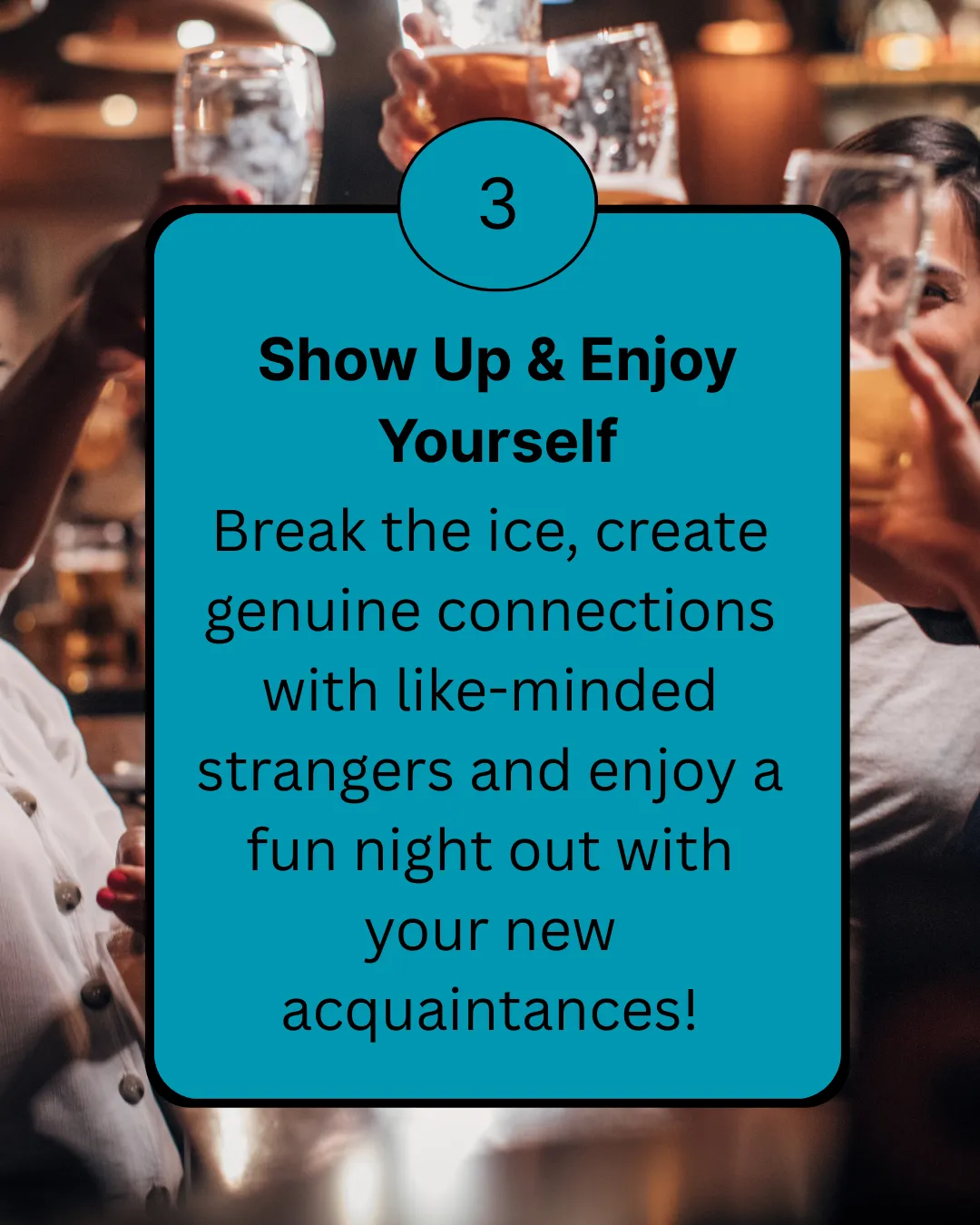 Professional Curation & Facilitation: We personally guide the evening, help spark conversations, and ensure everyone feels included. Think of me as your social connection wingman for the night.
